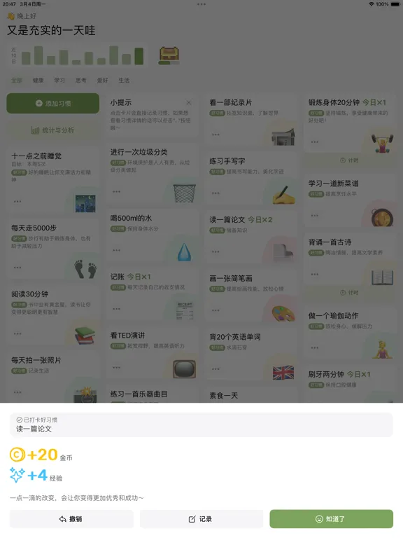 习惯岛 - 游戏化的习惯打卡记录·轻松养成好习惯 iPad Screenshots