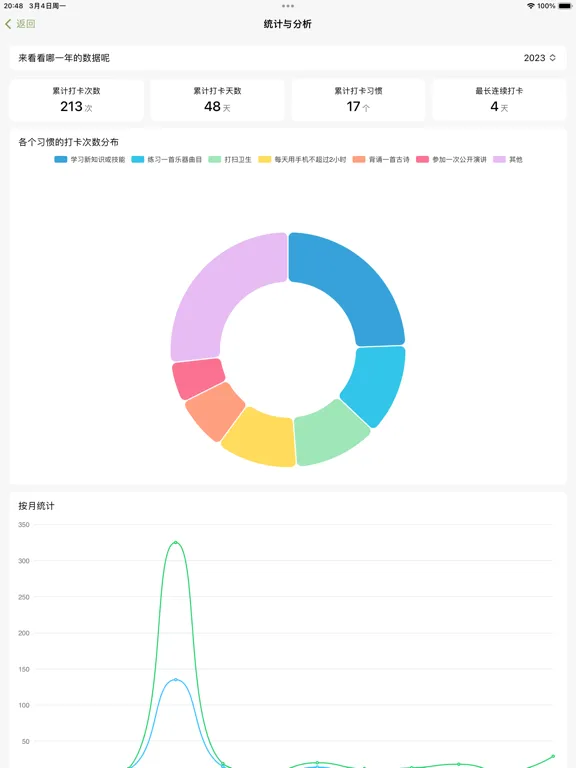- 统计图表:一目了然的打卡数统计