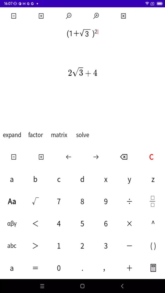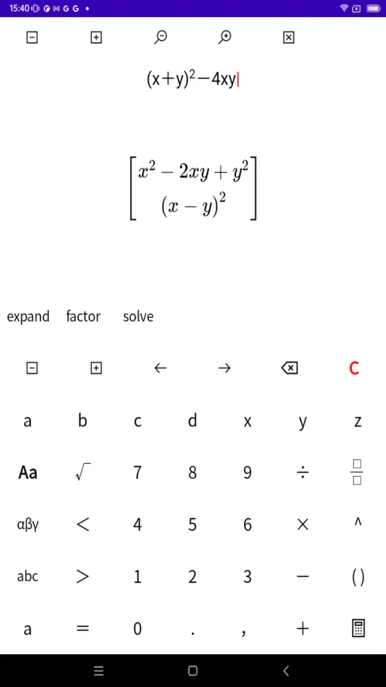 At its core, this app leverages Python’s SymPy, a robust and versatile symbolic mathematics library. However, the app only employs basic functionalities of SymPy, ensuring that the user experience remains uncomplicated while still delivering accurate results. While it may lack the high-performance capabilities of some industry-leading calculators, it provides sufficient tools for most middle and high school mathematical needs. For example, users can easily perform tasks like expanding algebraic expressions, factoring polynomials, or solving linear equations. On the other hand, advanced computations found in university-level or professional mathematics might prove challenging for this app due to its limited scope.