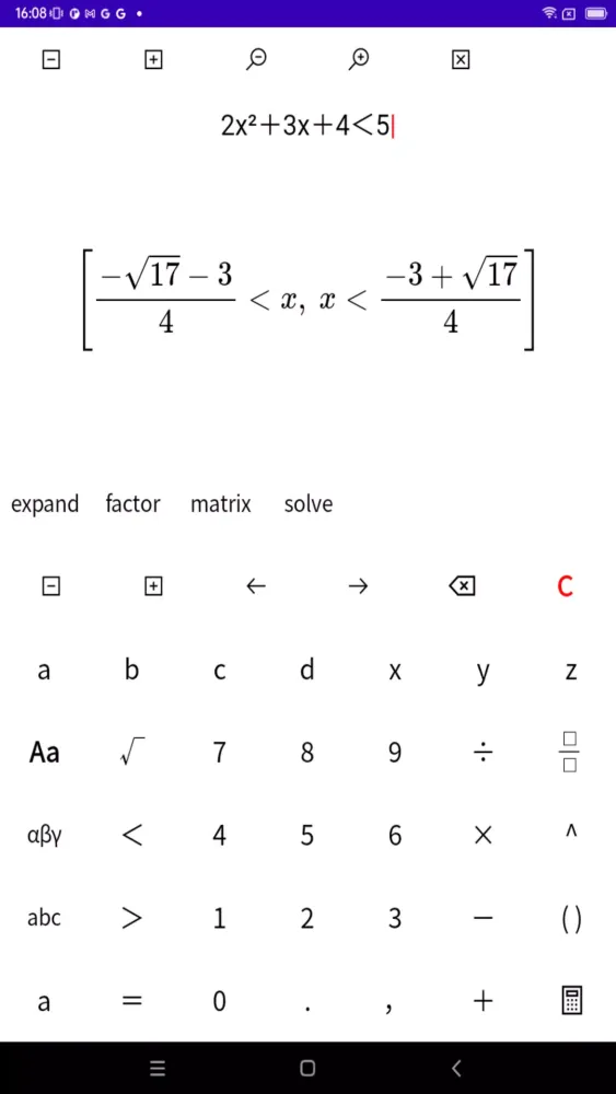 Description of "文字式の電卓【展開・因数分解・方程式・不等式】"