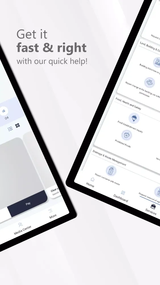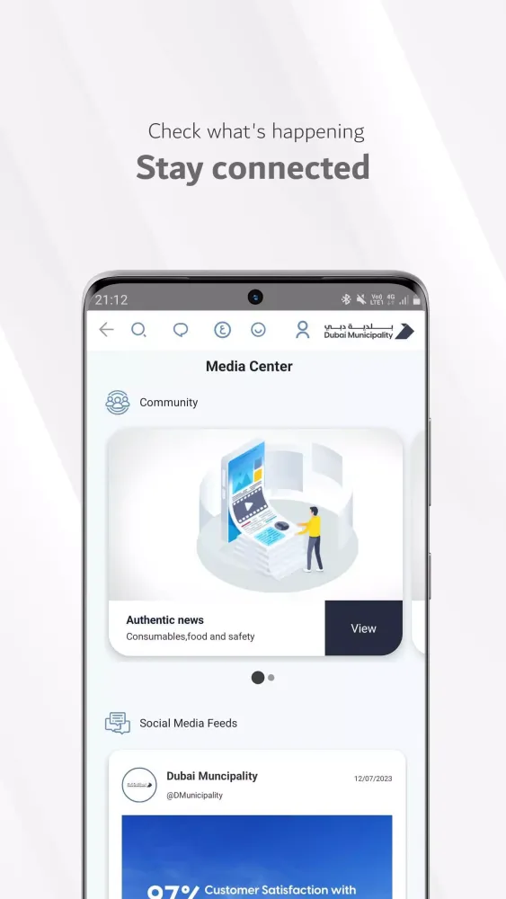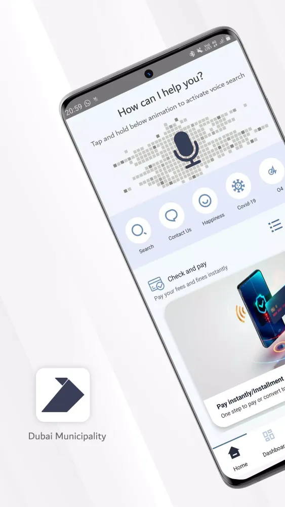 Dubai Municipality's newly revamped mobile application serves as a one-stop solution for accessing a wide range of smart services that align perfectly with the digital age. The app is designed with an innovative, vibrant interface that ensures intuitive navigation and a user-friendly experience. It also includes voice-enabled smart search capabilities, making it easier than ever to find and access the information you need quickly.