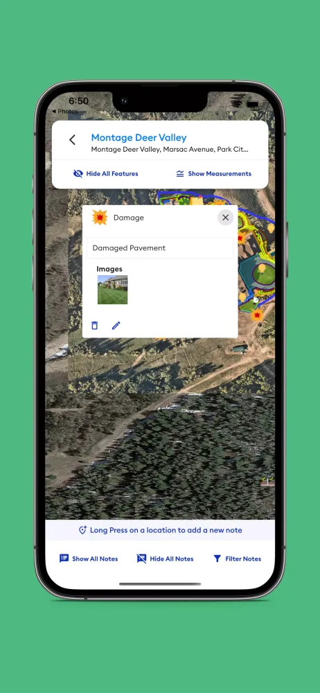 - Pin Notes: Drop a pin anywhere on the property and add detailed notes.