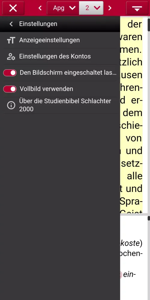 Another practical advantage of the Studienbibel Schlachter 2000 is its history feature. This tool helps users keep track of previously viewed texts, which is especially useful during Bible studies or while preparing sermons. Whether you're revisiting a familiar passage or exploring new territory, the app makes it easy to return to previous readings without losing your place. The app also supports both landscape and portrait orientations, providing flexibility in how you choose to read. For those who prefer reading in low-light conditions, the app offers a night mode option, reducing eye strain during late-night study sessions.