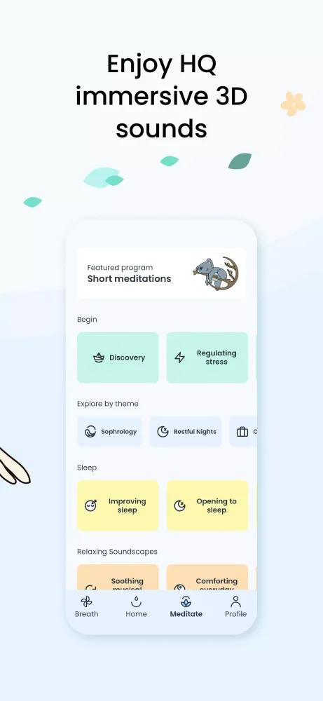 MeditBe was meticulously crafted by French experts to guide you through a wide range of programs and themes, including: