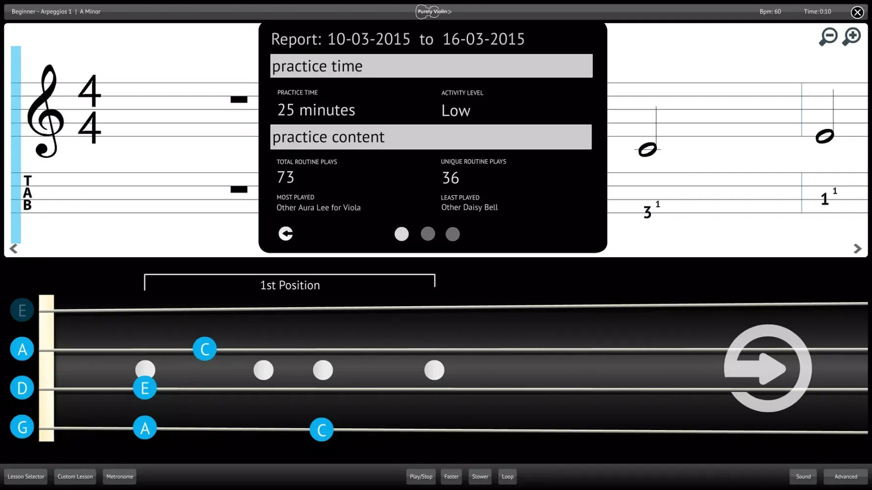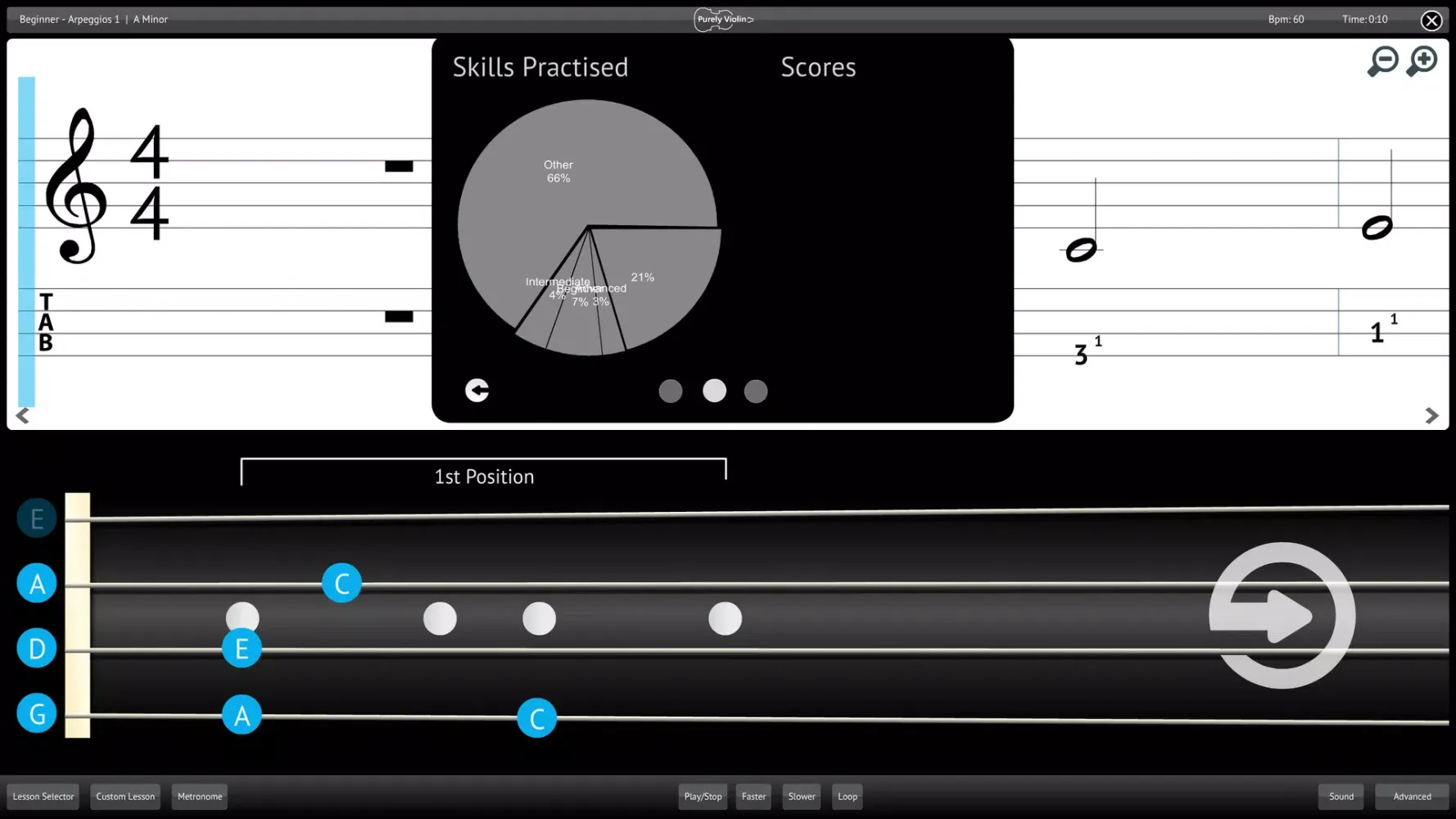 One of the standout features of Purely Violin is its user-friendly interface, which combines visual and auditory elements to create an immersive learning experience. The app includes a fingerboard, animated musical score, and tab notation, making it easier than ever to follow along with the music. With live animation, you can effortlessly track upcoming notes while listening to how the piece should sound.