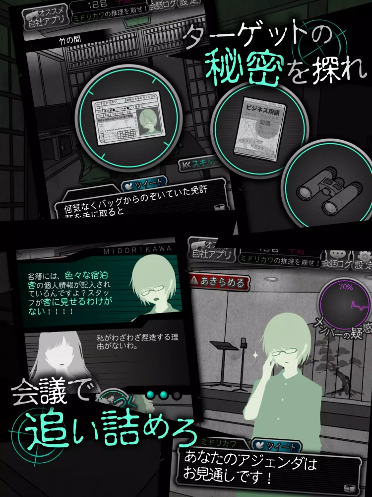 The heart of the gameplay lies in the "conference" section, where players present their findings and engage in heated debates. Here, you must strategically choose which pieces of evidence to reveal while countering accusations made against you. Timing is everything; if you make the wrong move, you risk losing ground in your quest for truth—or worse, becoming the next target of suspicion.