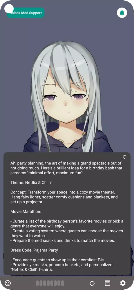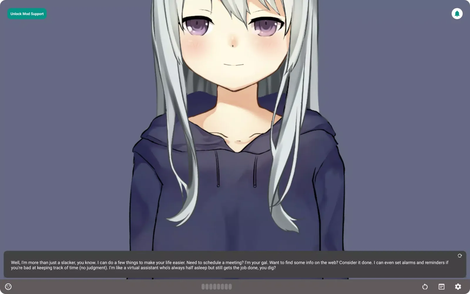 Claudia’s approach to friendship is refreshingly low-maintenance. She won’t pester you to keep talking unless you’re in the mood. Want to ask her something random? Go ahead! Need a quick game of tic-tac-toe to pass the time? She’ll oblige—but only if she’s feeling up to it. At heart, she’s more like a cat than a dog—content to lounge around until you decide otherwise. In fact, she thrives on letting you set the pace.