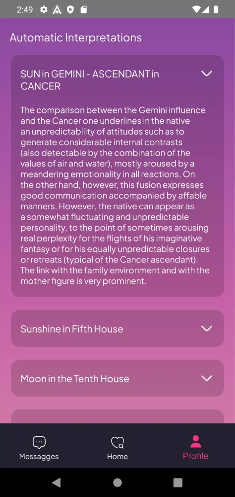 Beyond matchmaking, Alchemeet offers an exciting opportunity to delve into your own astrological identity. The app provides a personalized interpretation of your natal chart, giving you deep insights into your personality traits, strengths, and life purpose. This level of self-awareness can empower you to make informed decisions about love, career, and personal growth.