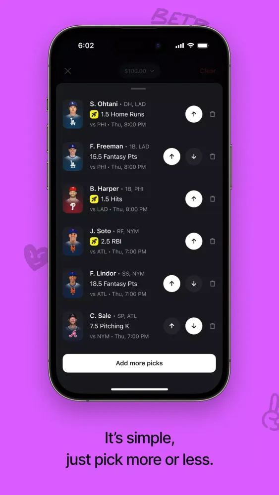 At the heart of Betr lies Betr Picks, a thrilling new twist on the classic pick'em style daily fantasy sports (DFS) games. Imagine the excitement of making predictions for multiple players across various sports, with the potential to win up to 1000x your initial entry fee. Betr Picks doesn't just stop at traditional pick'em formats; it introduces dynamic gameplay that allows you to win even with up to two incorrect selections. This means that even if one of your chosen players gets injured, you still have a chance to come out on top. Unlike other platforms that often result in frustrating ties or "pushes," Betr ensures that every pick counts, keeping the adrenaline pumping throughout the game. Whether you're aiming for boosted, discounted, or free picks, Betr empowers you to craft the ultimate lineup and maximize your winnings.