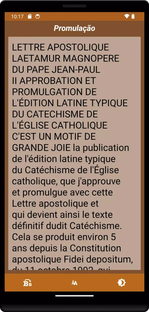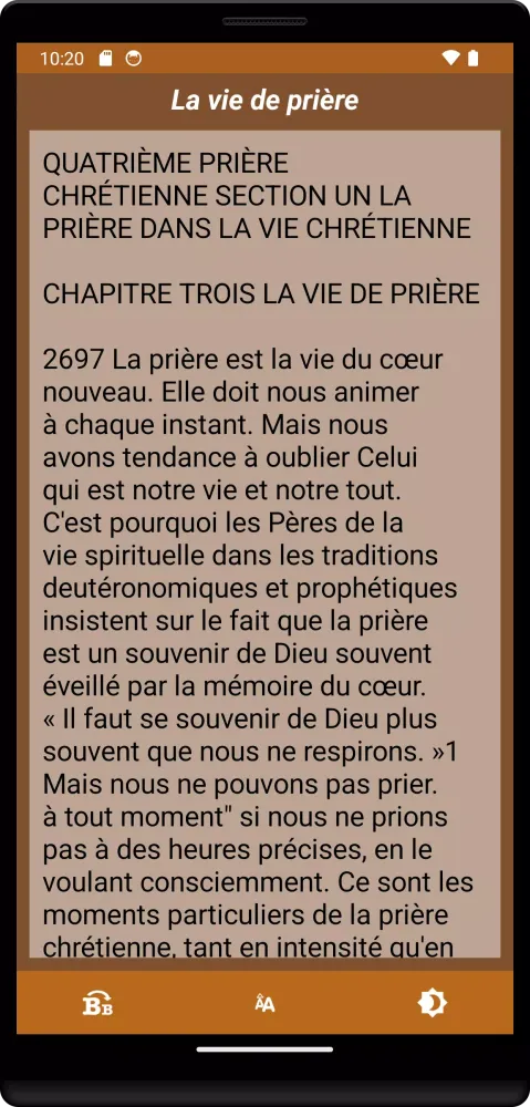 One of the standout features of the "Catéchisme des Catholiques" app is its offline functionality. Unlike many religious apps that require constant internet access, this tool allows users to explore the entire catechism without consuming their data plan. Whether you're commuting, traveling, or simply offline, you can access the full text of the Catechism at any time. Additionally, the app supports customizable font sizes, ensuring readability across devices. Users can easily share specific chapters or verses via social media platforms like Facebook, Twitter, and SMS, fostering community engagement and discussion.