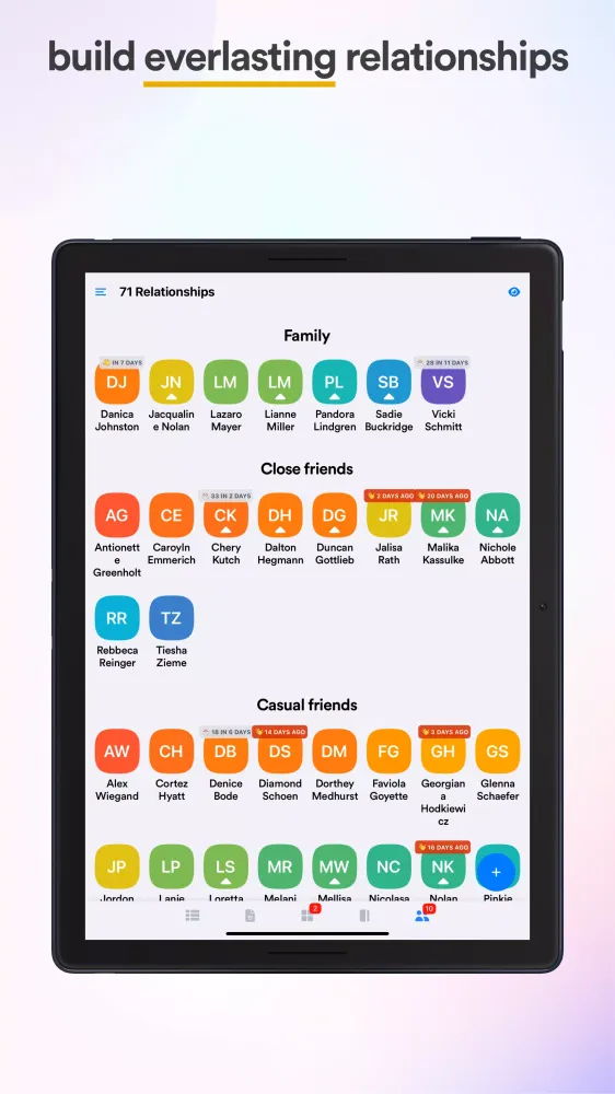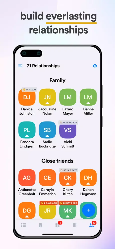 Maintain connections with friends and family by tracking important details, upcoming conversations, and special occasions. Lunatask acts as a CRM tool for your personal life, allowing you to fully customize fields and create timelines of happy memories. Set reminders to reconnect and never miss another anniversary again.