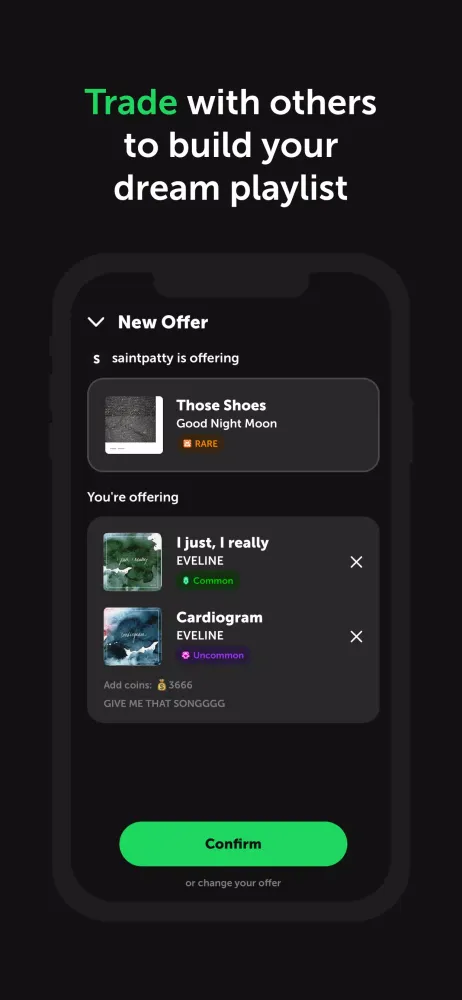 Do you have a song you've been longing for? Browse through the marketplace to see if other users are offering it. Make your best offer and engage in negotiations to secure the track you desire. It's a vibrant community where music enthusiasts come together to share and exchange.