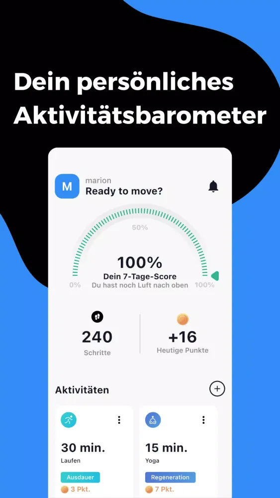 Another engaging feature of the MOVEVO Move app is the ability to collect steps daily, integrating cardiovascular conditioning seamlessly into your everyday life. Depending on your device type, the app syncs step data via Apple Health or Google Fit, ensuring accurate tracking. Furthermore, participating in various sports activities earns you additional points based on the duration of your workout. This gamified approach motivates users to stay active while providing tangible rewards for their efforts.