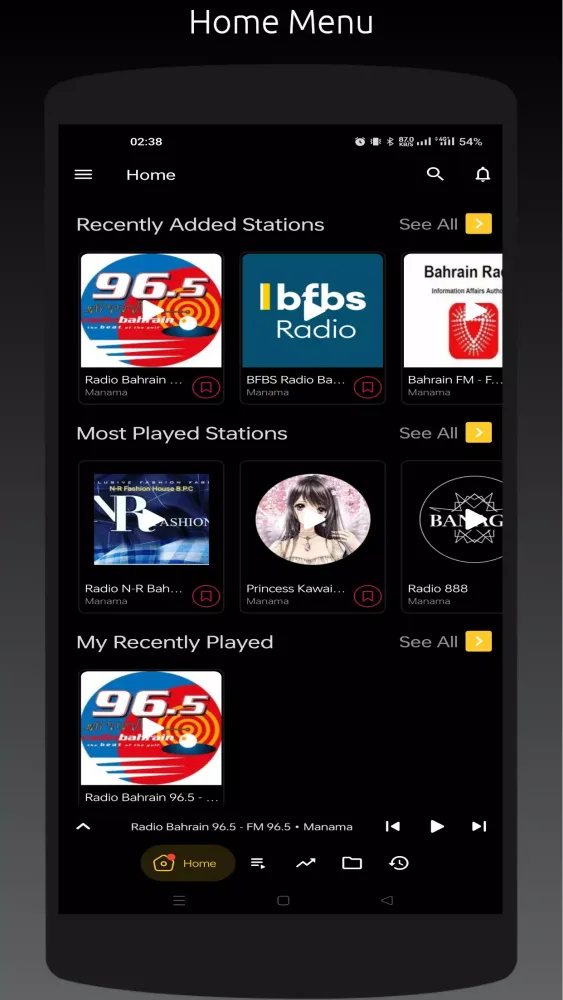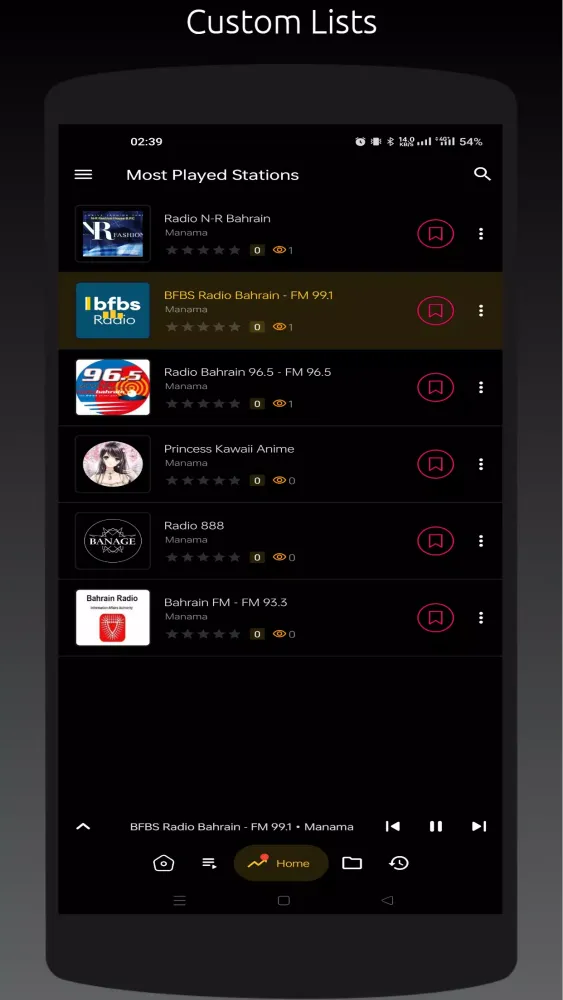 - Most Played Stations: Stay updated with the most popular radio stations in Bahrain.