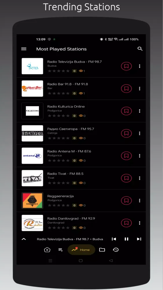 - Most Played Stations List: Discover the most popular stations among listeners.