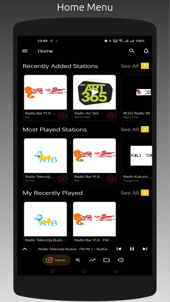 - Recently Played Stations List: Keep track of stations you've listened to recently.