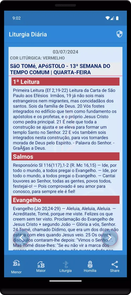 The app’s primary feature is its ability to deliver the daily liturgical readings, including the Gospel and the Psalms. Every day, users can access the official texts of Scripture that reflect the current phase of the liturgical calendar. This ensures that you remain aligned with the rhythm of the Church’s worship, whether it’s during Ordinary Time, Advent, Lent, or any other season. The app also provides a brief reflection on the Gospel of the day, helping you to meditate on the deeper meaning behind the words. These reflections are available both in written form and as audio recordings, offering flexibility to suit your preferences and lifestyle.