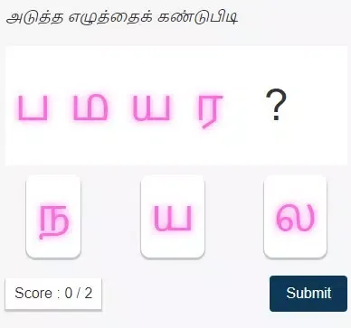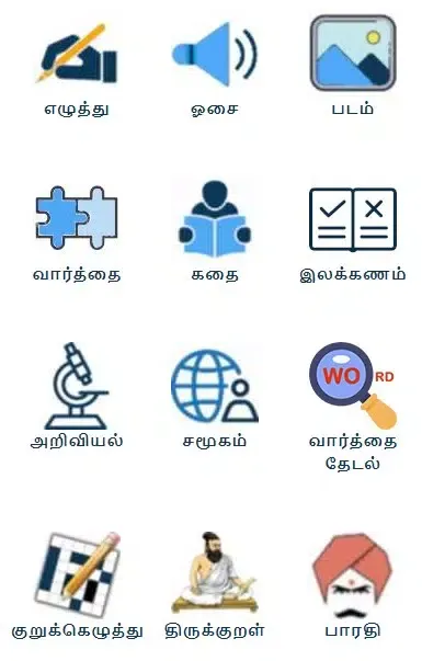- Letter and Sound Recognition: Exercises focused on identifying and pronouncing individual Tamil letters and sounds.