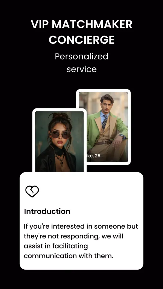 - VIP Matchmaker Concierge: For those who prefer a personalized touch, our VIP Matchmaker Concierge service assists you in finding, connecting, and communicating with potential partners.