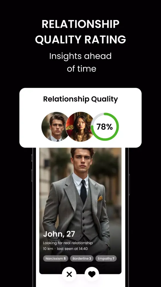 - Relationship Quality Estimation: Every profile includes a Relationship Quality Metric, providing you with instant compatibility indicators.