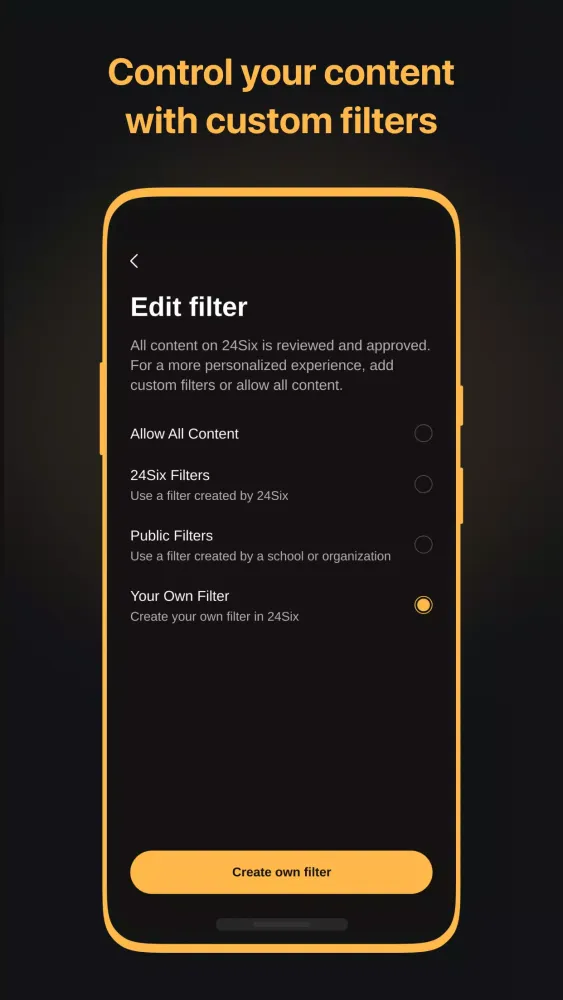With the 24Six app, you no longer need to say "no" to every piece of content that doesn't meet your standards. Gone are the days when you had to worry about inappropriate content sneaking into your family's media consumption. The 24Six app allows you to take full control of what your family watches, listens to, and plays. No more compromises on entertainment quality or appropriateness.