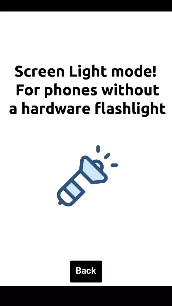 - Screen Flashlight Mode: For devices without a physical flashlight, SC Flashlight offers a unique "Screen Flashlight" mode. This feature utilizes your smartphone’s screen and brightness settings to simulate the light of a traditional flashlight. 📱