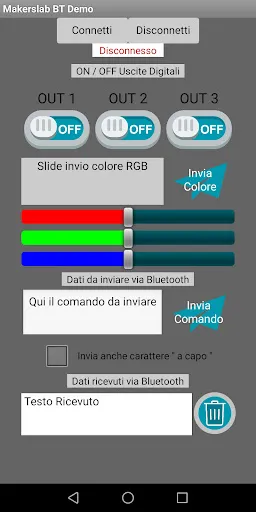 Questa app permette di testare le funzionalità dei moduli Bluetooth HC-05 e HC-06 con Arduino trattate nella pagina:
