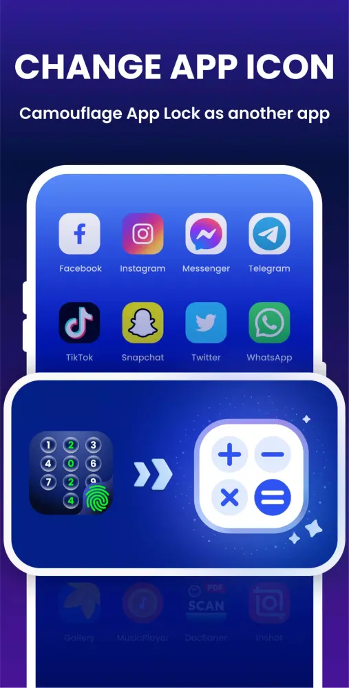 - Icon Camouflage: Disguise the App Lock icon as a calculator, weather app, or any other app to add an extra layer of security.