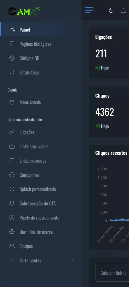 The interface of AmzX:Encurta URL, Bio e QrCode is very user-friendly. I highly recommend it to anyone who needs to shorten links.