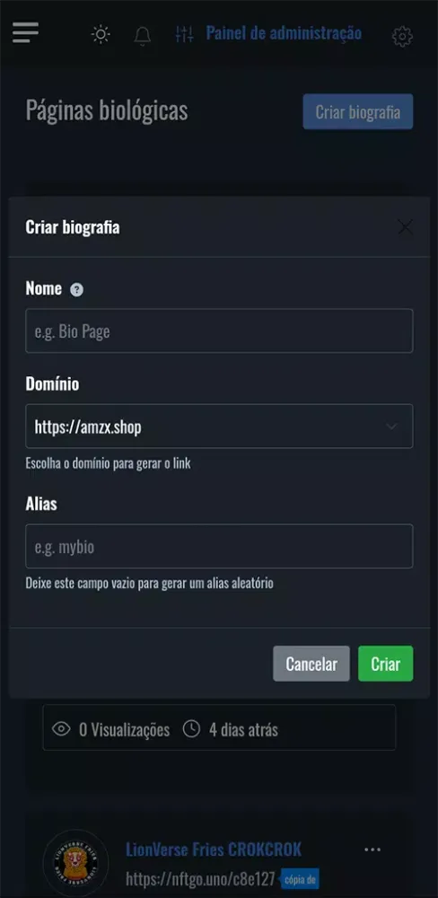 AmzX:Encurta URL, Bio e QrCode