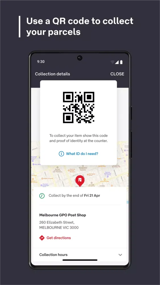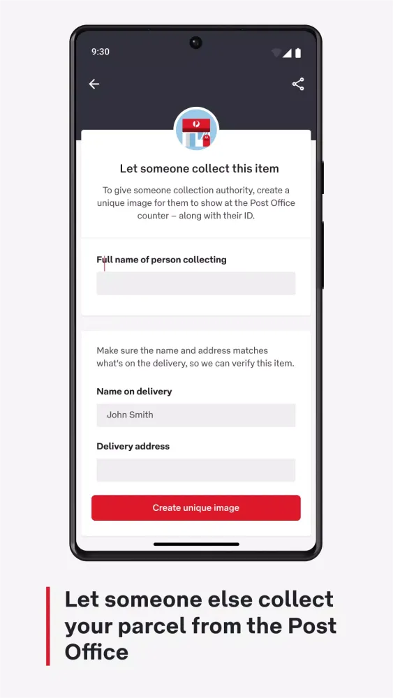 Use the app’s collection QR code to pick up missed deliveries directly from the post office, eliminating the need for a physical card.