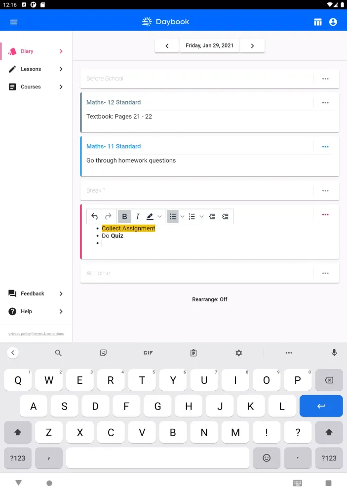 Whether you're at school, at home, or on the go, Daybook ensures that you can access your diary anytime and anywhere. Its robust online and offline support guarantees that you never miss a beat, even when you're not connected to the internet.