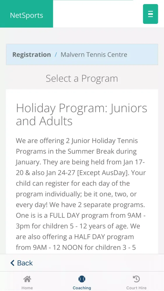 In addition to court booking, the app provides an opportunity to enroll in various classes that cater to different skill levels. Whether you're a beginner eager to learn the basics or an advanced player looking to refine your technique, NetSports has something for everyone. The app also facilitates enrollment in holiday camps, perfect for keeping young players engaged and active during school breaks.