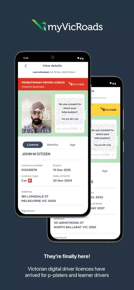 Digital Driver Licenses are currently available to all Victorians who hold a full or probationary driver's license, or a learner permit. The app also serves as a quick gateway to your myVicRoads account, where you can access a wide range of registration and licensing services online.