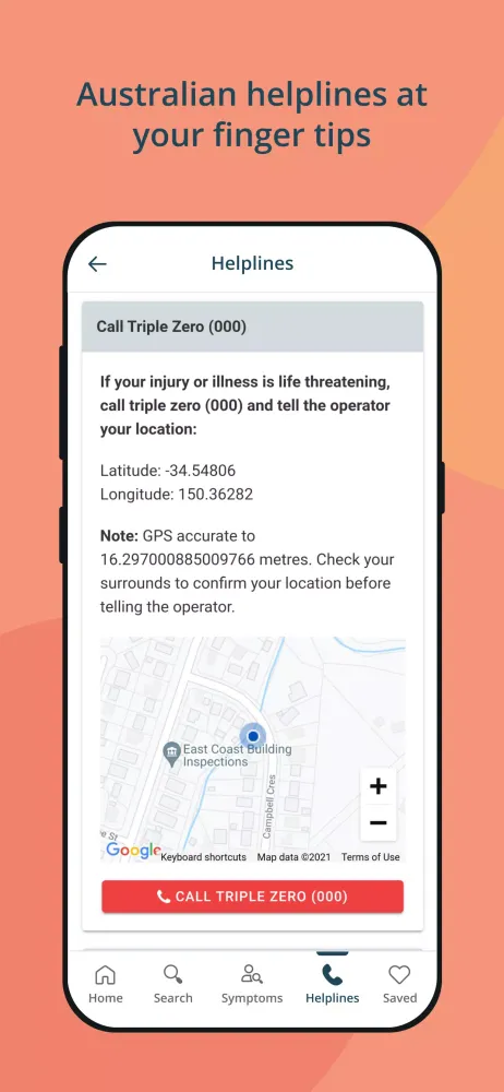 In emergency situations, the healthdirect app also proves to be a lifesaver. In moments when you might feel disoriented or unsure of your exact location, the app displays precise latitude and longitude coordinates. These coordinates can then be shared with emergency services operators, ensuring faster response times and better outcomes.