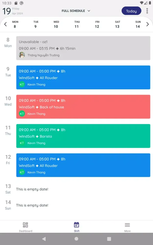 Employee Tracking: With OZRoster, employees can check their work schedules, request time off, and accurately record clock-in and clock-out times. This feature enhances accountability and ensures that all time records are up-to-date and accurate, providing a clear overview of employee attendance and productivity.