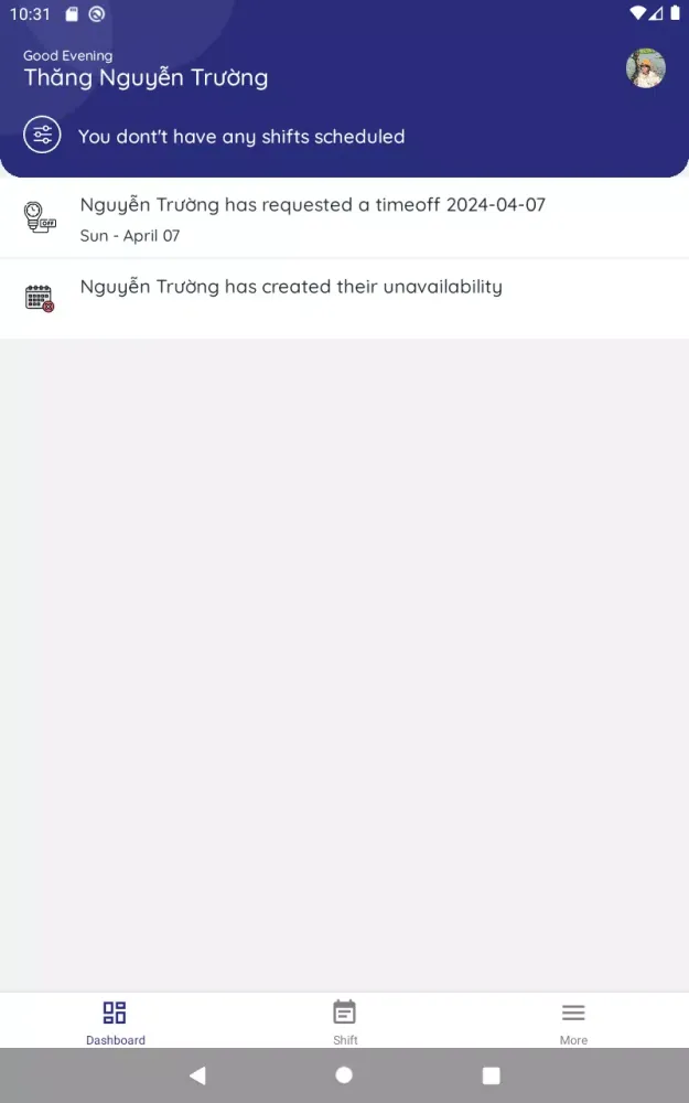 Notification System: The application includes an automated notification system that proactively reminds employees of upcoming shifts. It also notifies managers of time-off requests and alerts administrators to any scheduling conflicts, helping to prevent overbooking and ensuring smooth operations.