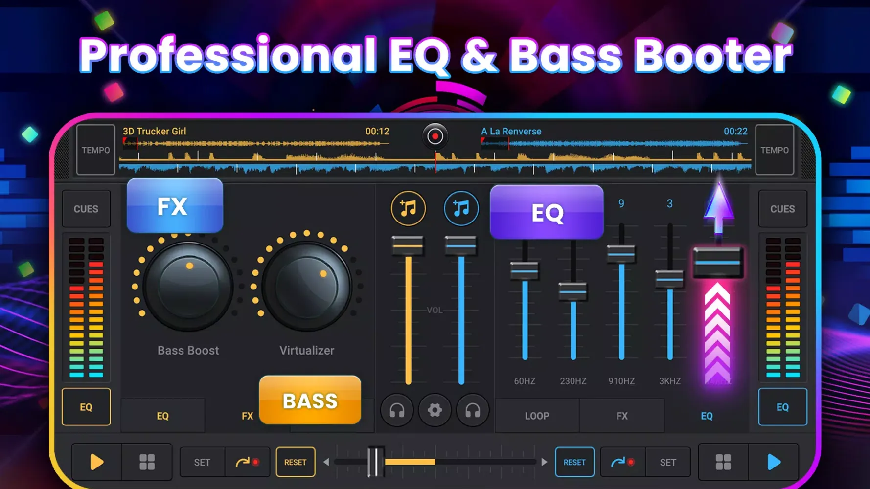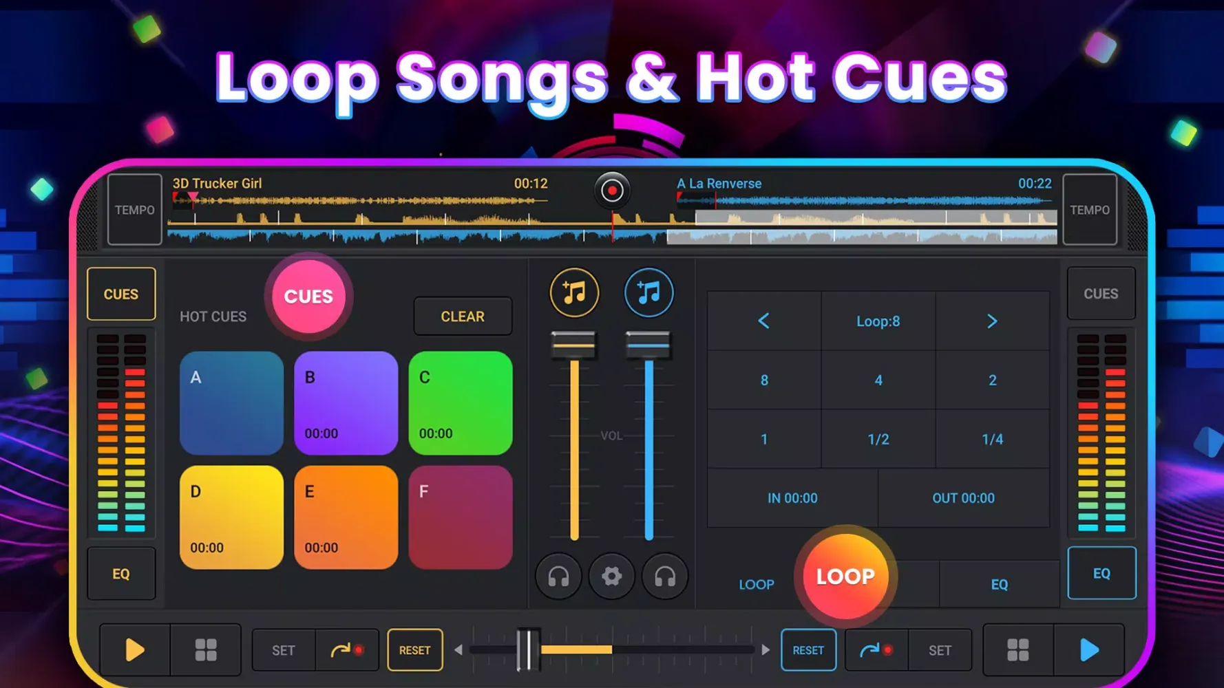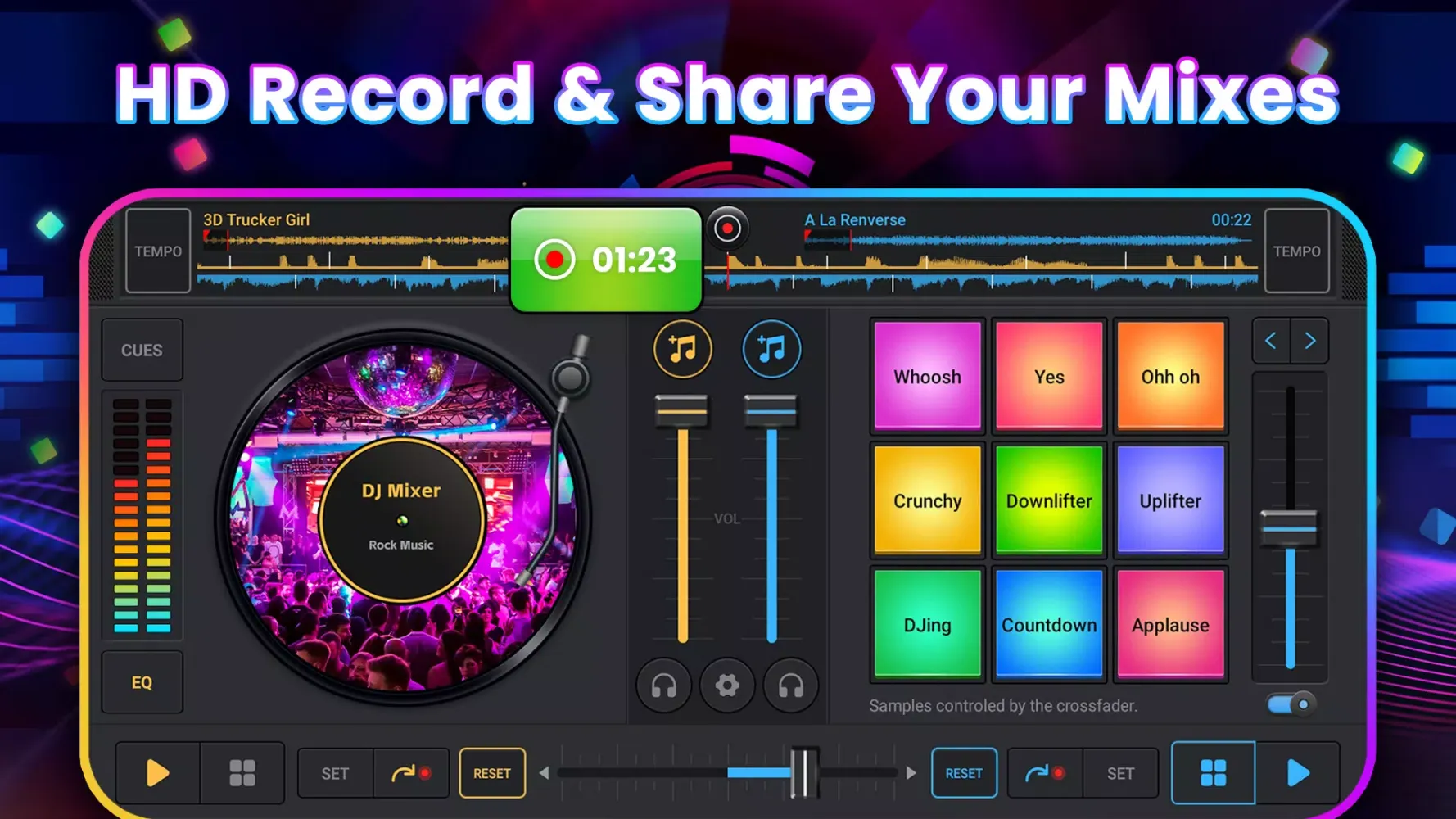 - Dual Decks: Play music simultaneously or sequentially.