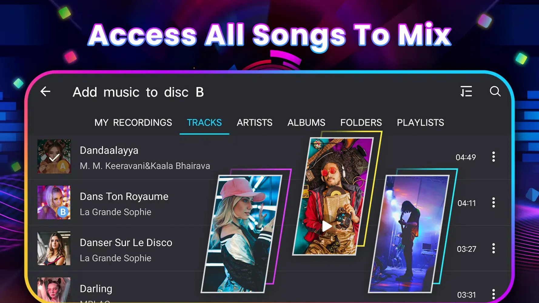 - Live Performance: Impress your friends with seamless transitions and dynamic mixes.