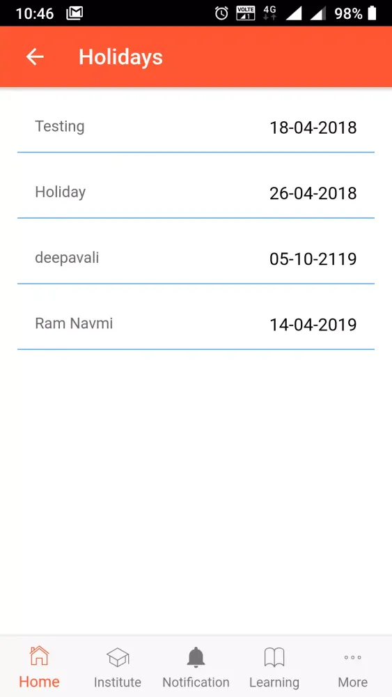 Attendance Management: Parents can easily monitor their child’s attendance status and plan leaves accordingly. The app provides clear visibility into the number of days attended and the remaining leave balance.