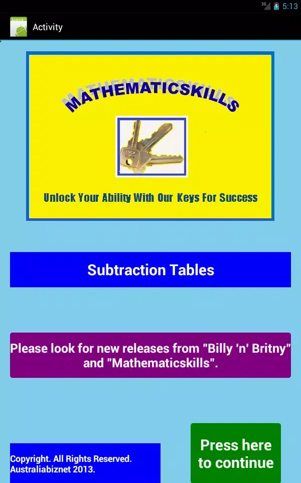 Regular use of this app can significantly aid in preparing for tests and exams. For younger children, the developers recommend the sister application "Billy 'n' Britny," which is tailored towards basic subtraction exercises and contains fewer tables up to "9."