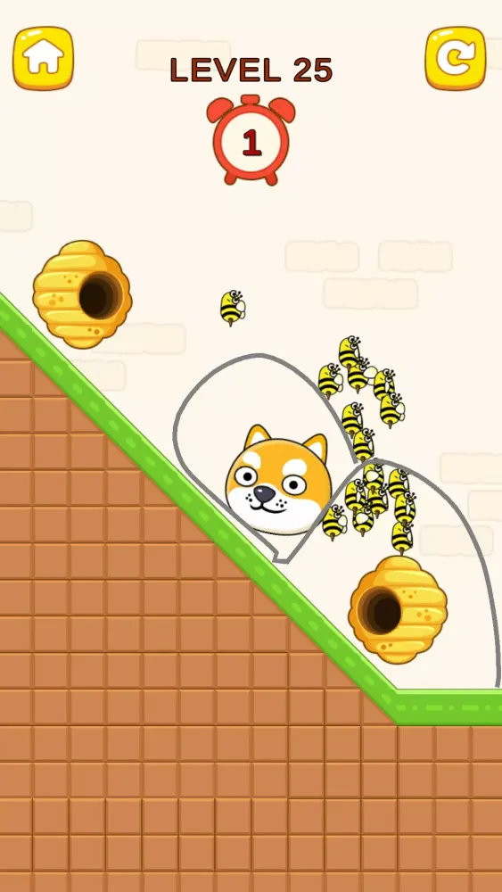 But beware! Bees are not the only threat. The path to safety is fraught with danger, including treacherous lava, relentless water currents, sharp spikes, and even explosive bombs. Each obstacle requires careful consideration and strategic thinking to ensure the dog's survival.