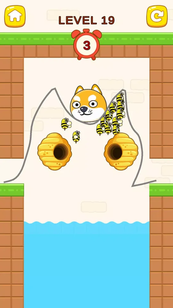 The cute dog is in peril! Evil bees have emerged from their hives with the sole intention of stinging our furry friend. As a valiant protector, your mission is to save the dog by drawing a protective barrier using your fingertips.
