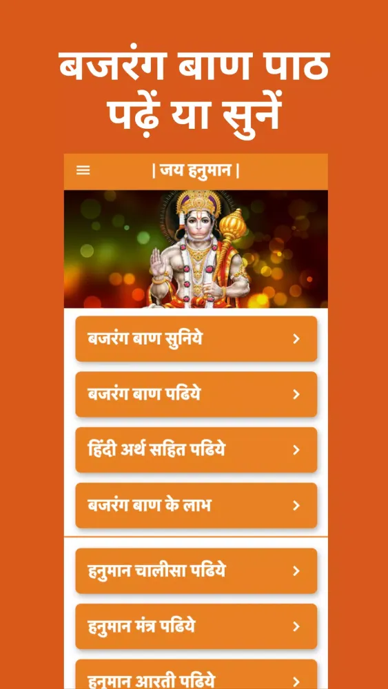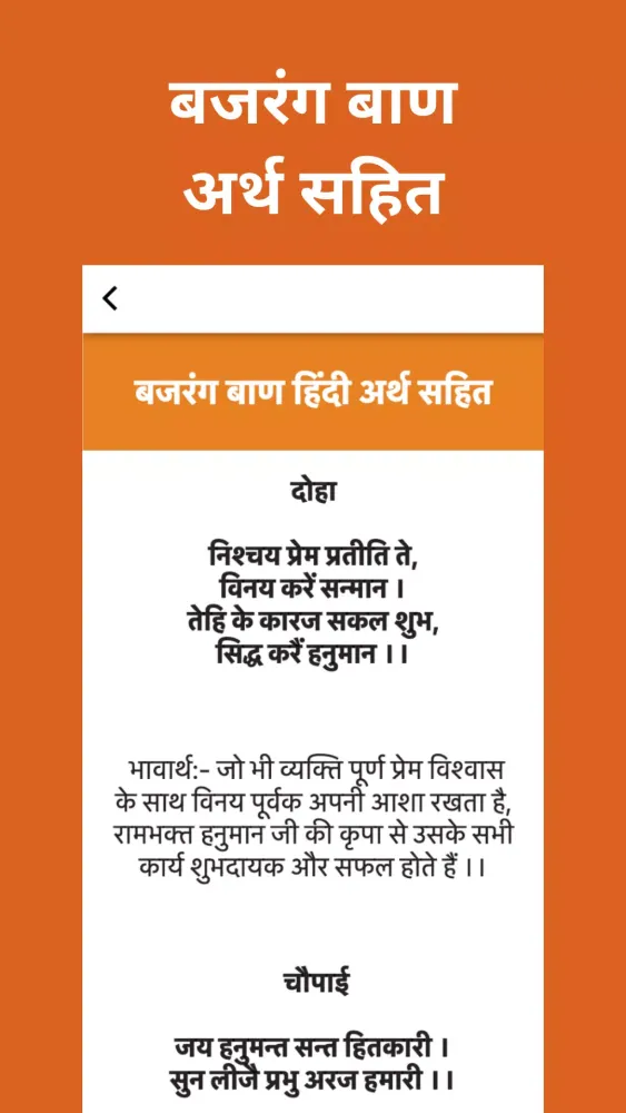 The app provides a user-friendly interface that allows you to access the Bajrang Baan with ease. Whether you prefer reading the text or listening to the audio, you have both options at your fingertips. Additionally, the app features the Bajrang Baan with its meanings (arth sahit) in Hindi, enhancing your understanding and appreciation of the text. You can also learn about the various benefits of reciting the Bajrang Baan, deepening your spiritual practice.