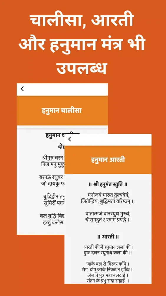 For those who wish to delve deeper into their devotion, the app includes the Hanuman Chalisa, Aarti, and Mantras, all available in Hindi. These additional resources enrich your spiritual journey and provide a comprehensive experience.