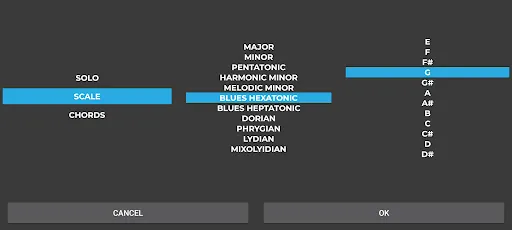 - 3 modes to learn to play guitar music: Solo mode, Scales mode and Chords mode.