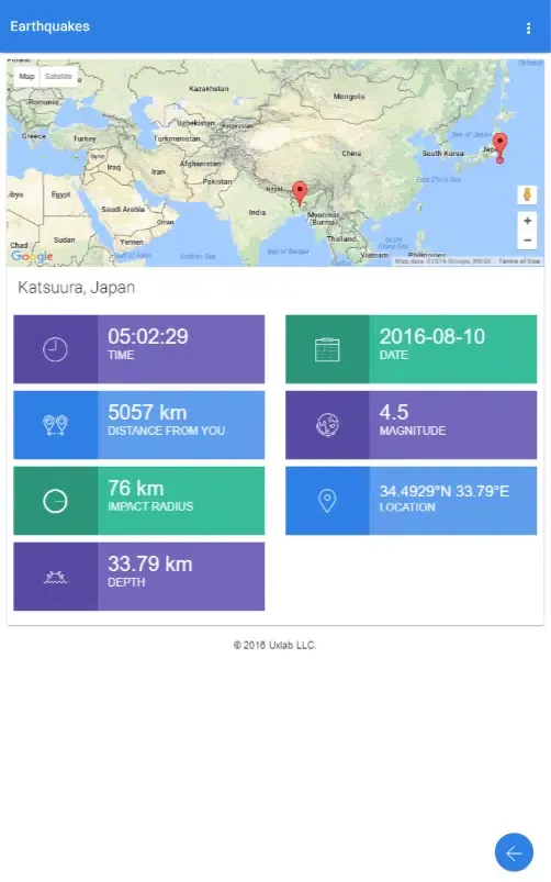 Another impressive aspect of the app is its interactive map feature. When you open the app, you'll be greeted with a visual representation of the world where earthquakes are marked with distinct symbols. By clicking on any marker, you can access detailed information about that specific event. The app also allows users to see the exact location of the earthquake's center and its surrounding impact radius directly overlaid on the map. This makes it easy to grasp the scale of the disaster and assess potential risks if you happen to be nearby.