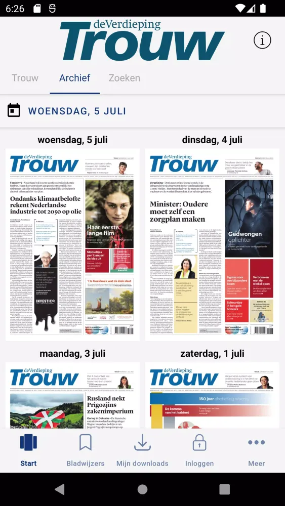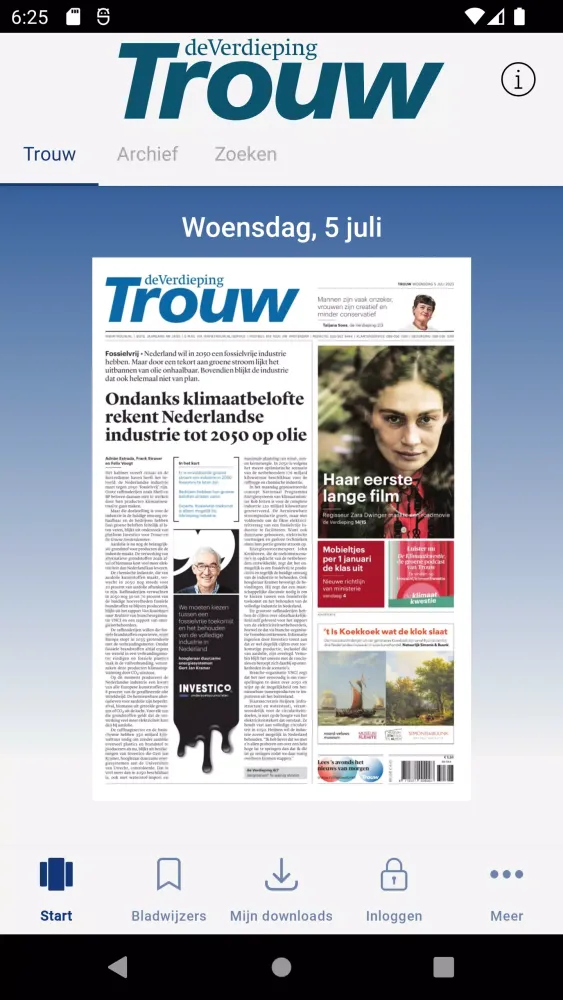 You have the flexibility to choose between viewing Trouw as a printed newspaper or in a simplified text and image version. This versatile approach ensures that you can engage with the content in a manner that suits your preferences. The app allows you to zoom in on pages, articles, and images, enhancing your reading experience.