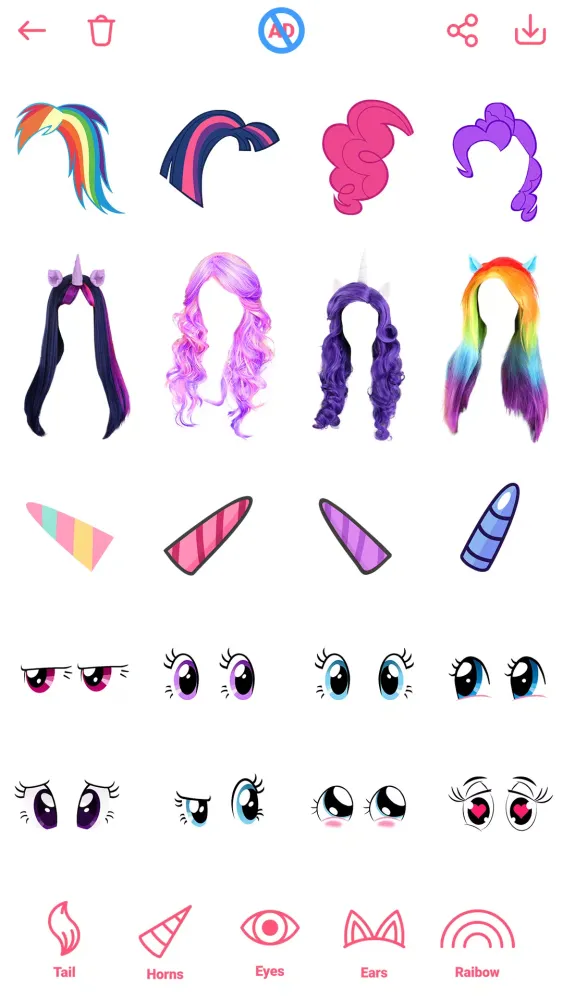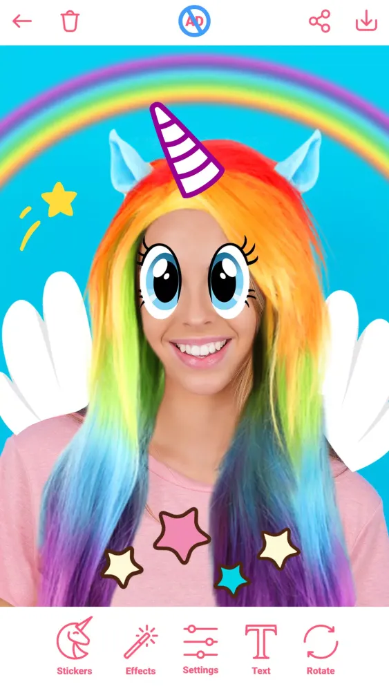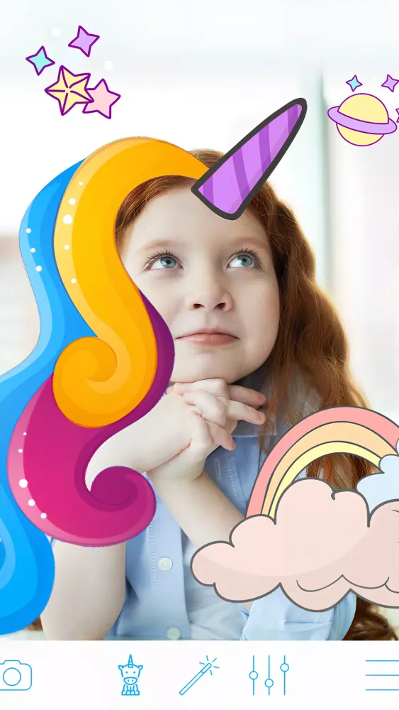 But Pony Photo doesn’t stop at just editing existing photos. Its built-in girls camera effects allow you to capture brand-new moments directly within the app. Take selfies infused with magical touches like unicorn horns, horn-on-photo effects, and pony-themed accessories. It’s like having your very own fairy godmother guiding your camera lens! Plus, the app includes a selection of cute stickers for girls, ranging from unicorns to hearts, giving you the freedom to embellish your creations however you please.