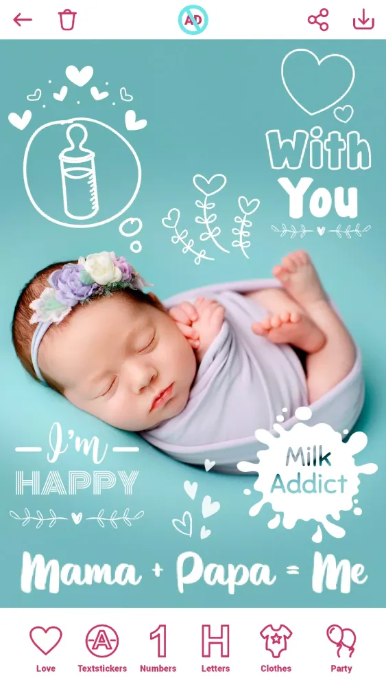 - Share Your Baby Pics: Save your cute baby photo art to your gallery or share with family and friends directly from the app. Sharing has never been easier!